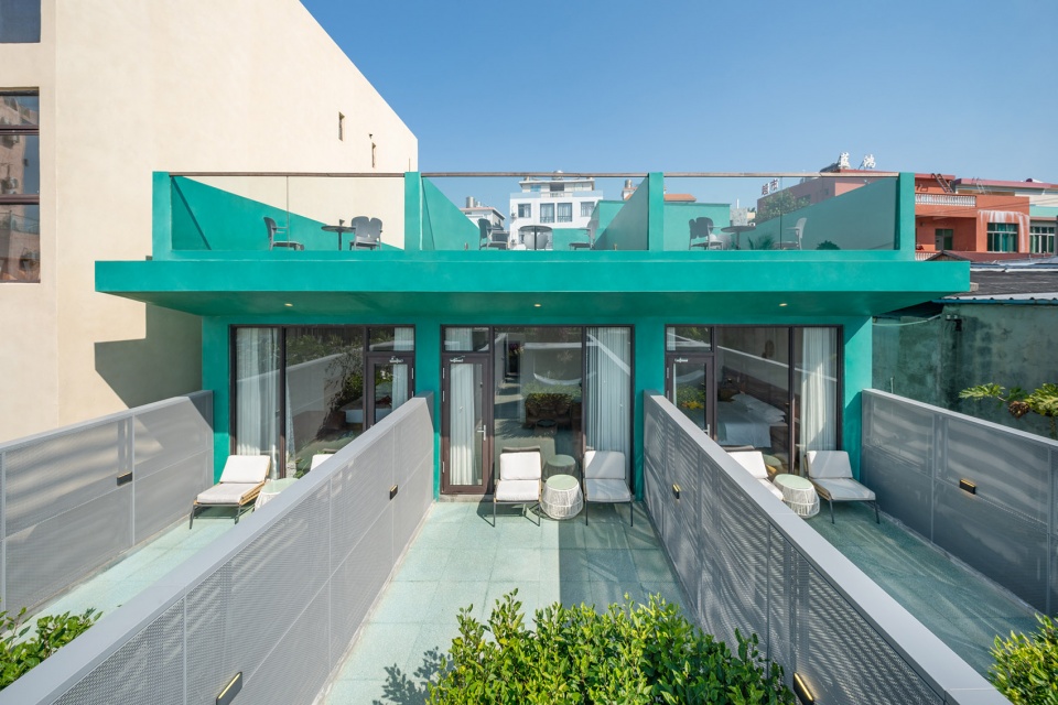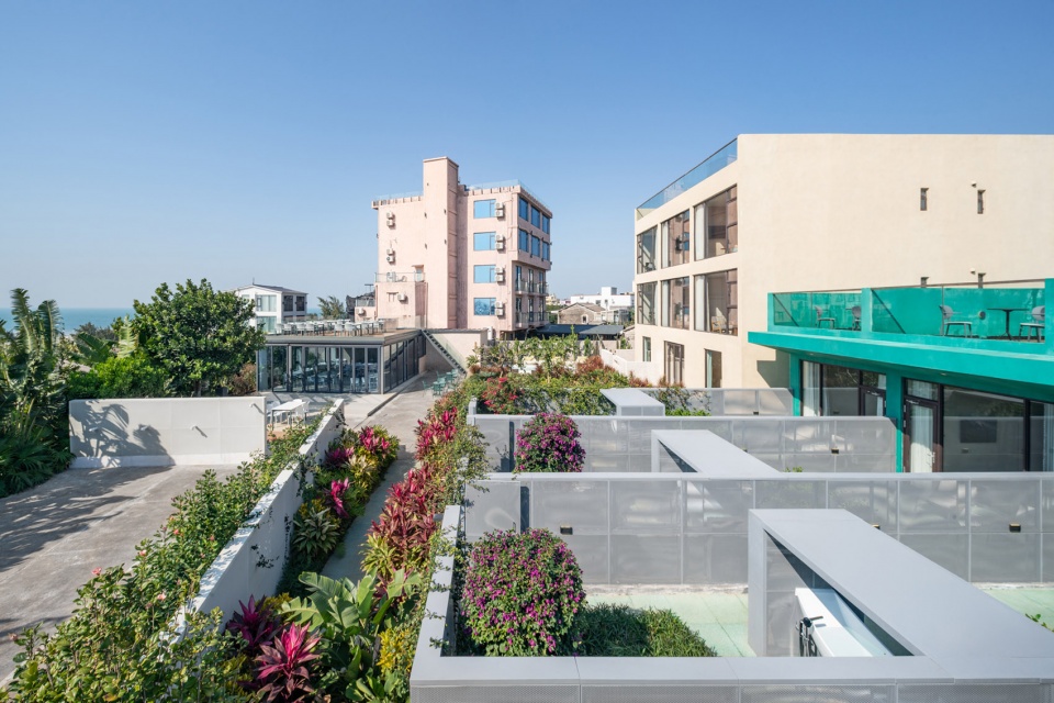 民宿主建筑為三層的漁民平房,主要戶型為海景套間,設計師在原平面上作出許多優(yōu)化調整,過道或室內運用了大量當地水洗石。副樓為一層的三開間平房,設計了三個帶院子的房間,客人可以享受獨門獨院的花園, 在屋頂能遠眺海景。