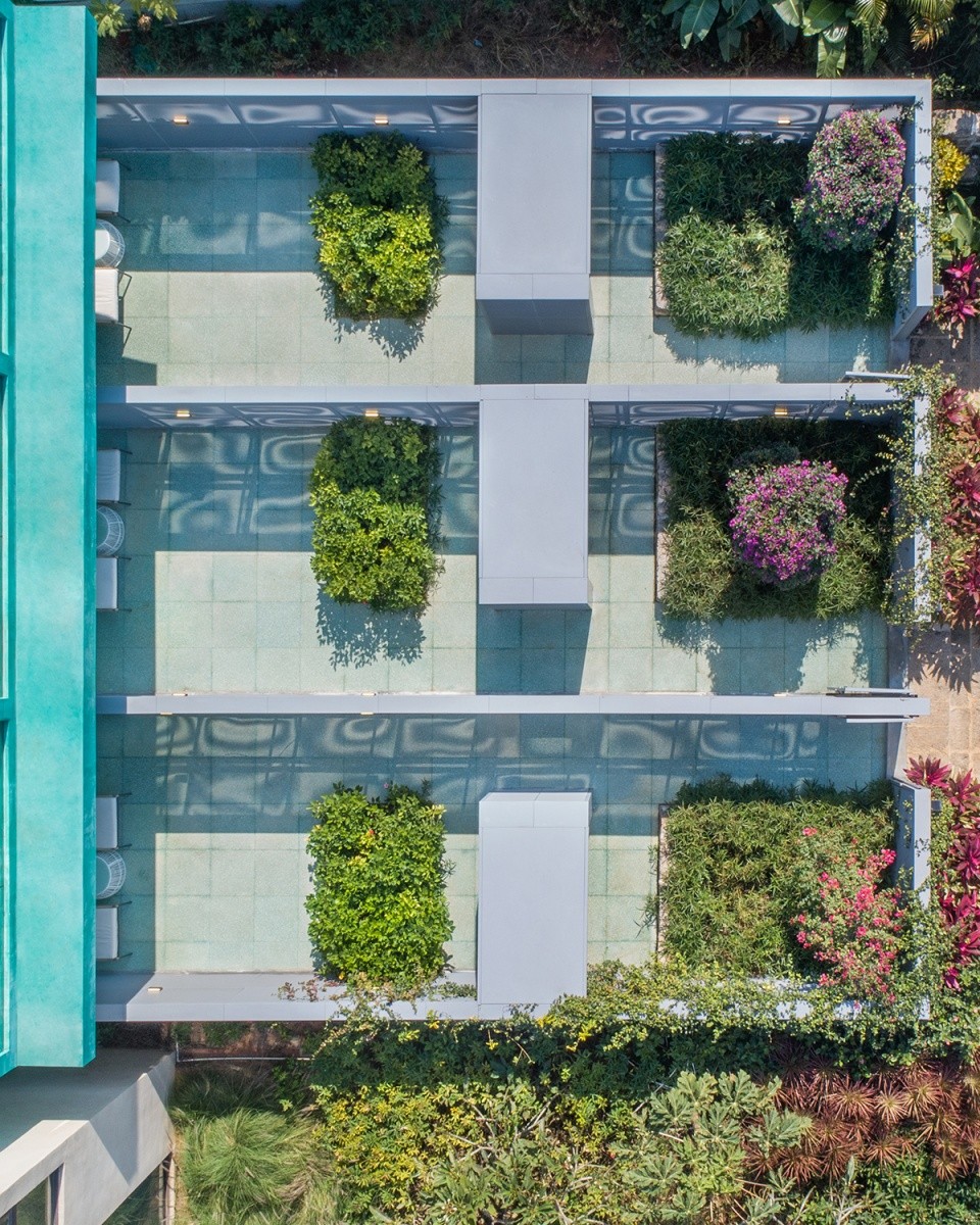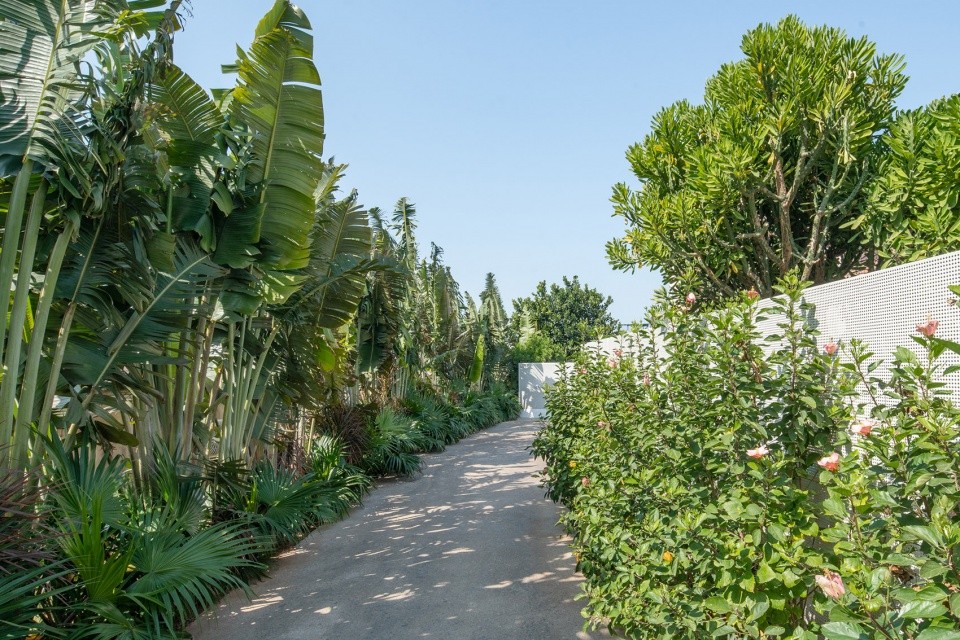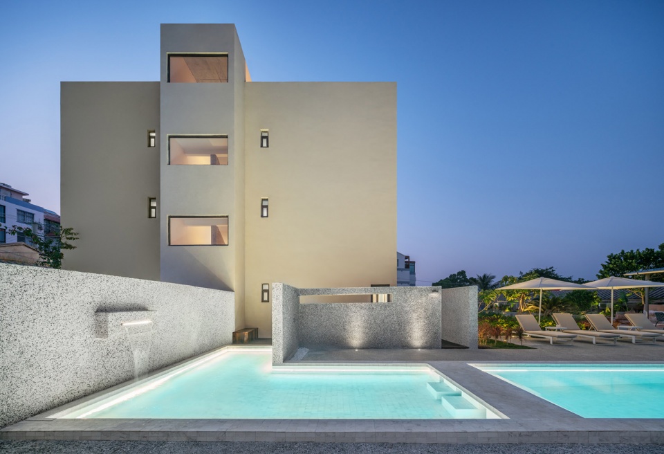 青驪北院以三個單體建筑圍合而成, 包括兩個主建筑,一個餐廳與游泳池。除了基地無邊界海景以外,設計師計劃通過地景與當地材料去提供不一樣的居住體驗。北院的入口是香蕉樹葉漫步路徑,營造我們安靜心情進入民宿范圍。